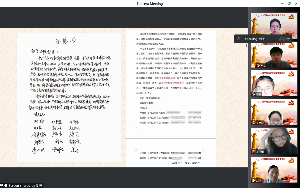 接下来,刘玉老师带领大家学习了《中共yl23455永利官网委员会致全校各级党组织和广大党员干部的倡议书》,刘老师表示,学习二十大精神要把理论与实践结合。在疫情防控阻击战中,我们既要清醒认识局势的复杂性,也要树立必胜的信念。作为学生党员,要起到表率作用,有积极正向的舆论导向。