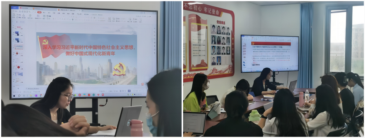 接着宋晗书记以此为切入点组织全体党员学习党的思想理论,以讲述和观看视频的方式详细讲述中国式现代化并从中国式现代化的本质和核心两方面进行讲解,加深大家对中国式现代化的认识