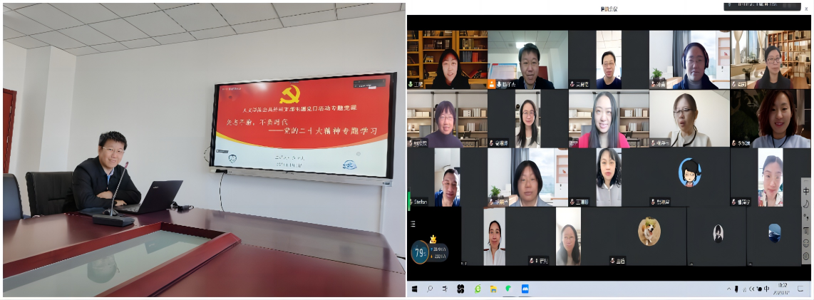 3月1日上午10:00,yl23455永利官网公共外语党支部在yl23455永利官网305会议室和腾讯会议开展了“矢志不渝,不负时代-党的二十大精神专题学习”党课活动。本次党课由公共外语党支部书记陈子杰老师主讲,支部全体老师参加了此次学习。