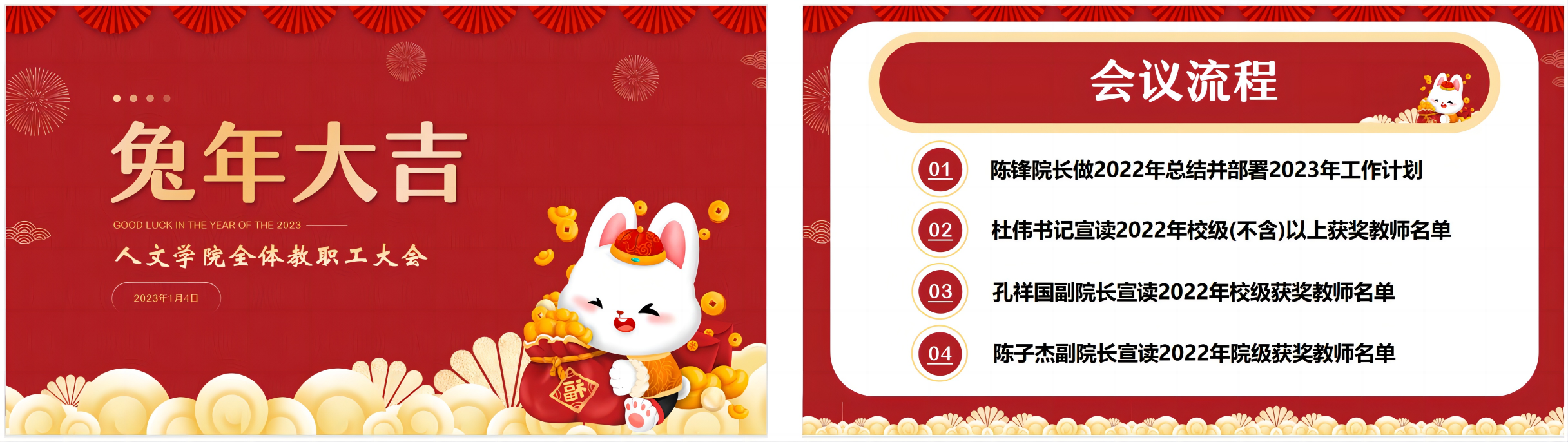 2023年1月4日下午,yl23455永利官网以线上形式召开全体教职工大会。学院全体党政领导班子成员和全体教师相聚云端,共同回顾总结2022年的工作,展望新的一年,表彰先进教师,共贺新春佳节。会议由工会主席谭静主持。