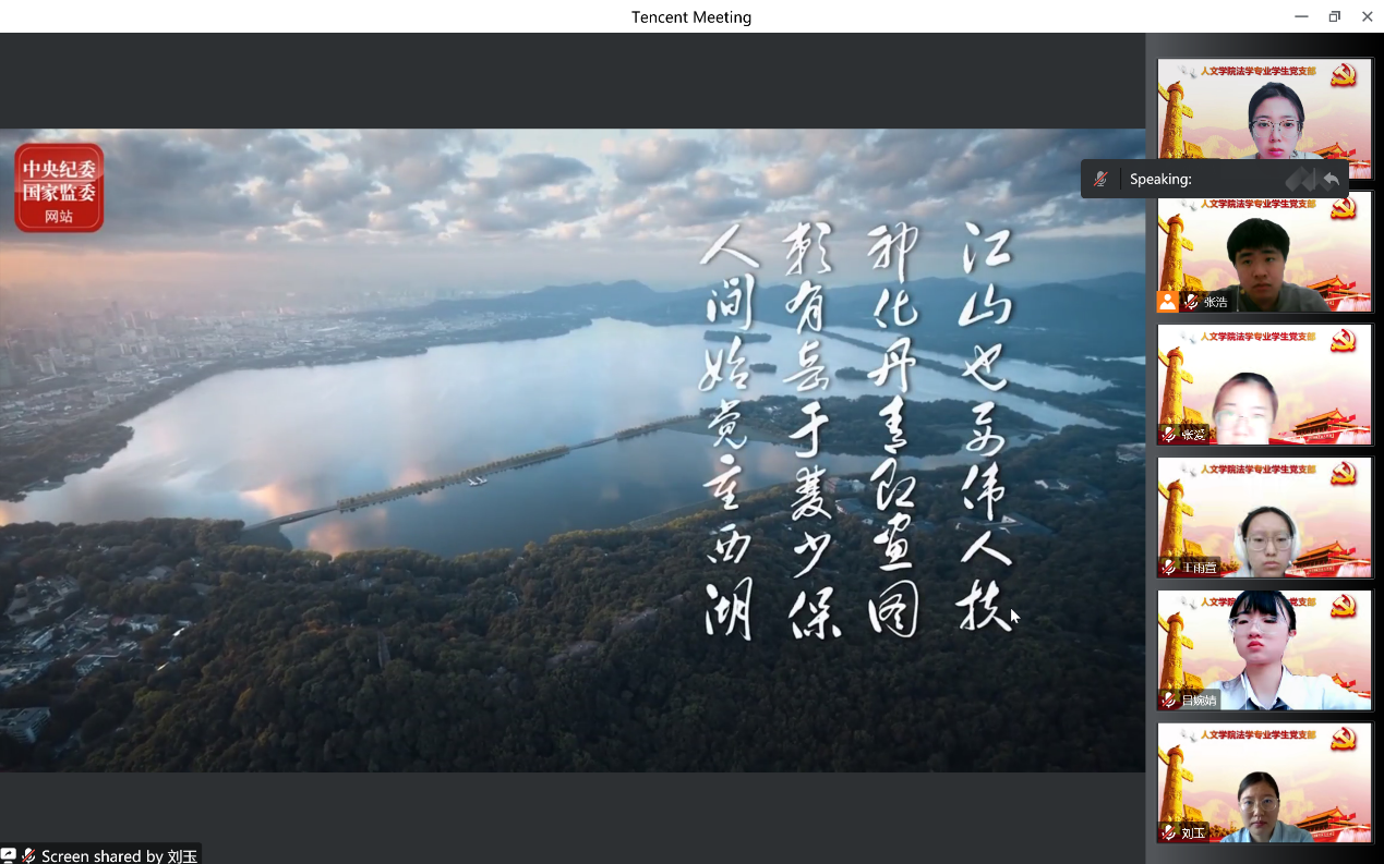 其次,刘玉老师带领大家观看了中央纪委、国家监察委员会网站上关于党风廉政建设的宣传视频,视频生动介绍了为官清廉、心系群众的古代官员于谦的生平。刘玉老师告诫学生干部、学生党员应该树立清正廉洁的意识,学习于谦家国天下的情怀。