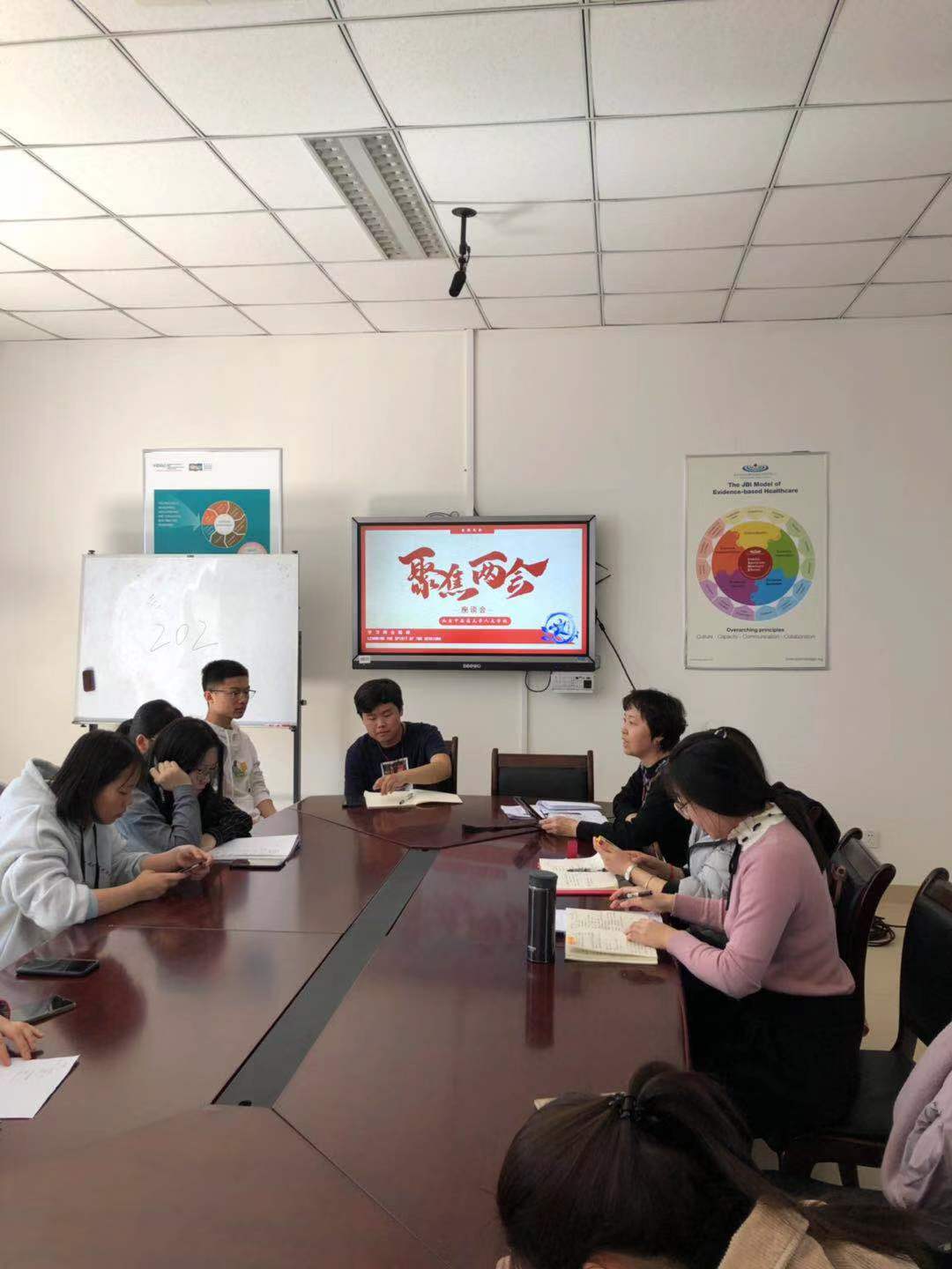 座谈伊始,同学们各抒己见,对“两会”热点议案展开了热烈的讨论,提及如“全民健康体检应纳入医保”、“恢复‘五一’长假”、“如何打赢蓝天保卫战”、“烟草盒应印肺癌图片”等议案,并对此发表了个人的见解。同学们在认真学习领会全国两会重点内容的基础上,将所学知识与社会时事热点相结合,畅谈对国家发展、民族未来和个人发展的期盼,展现了当代大学生关注社会民生的责任感于使命感。