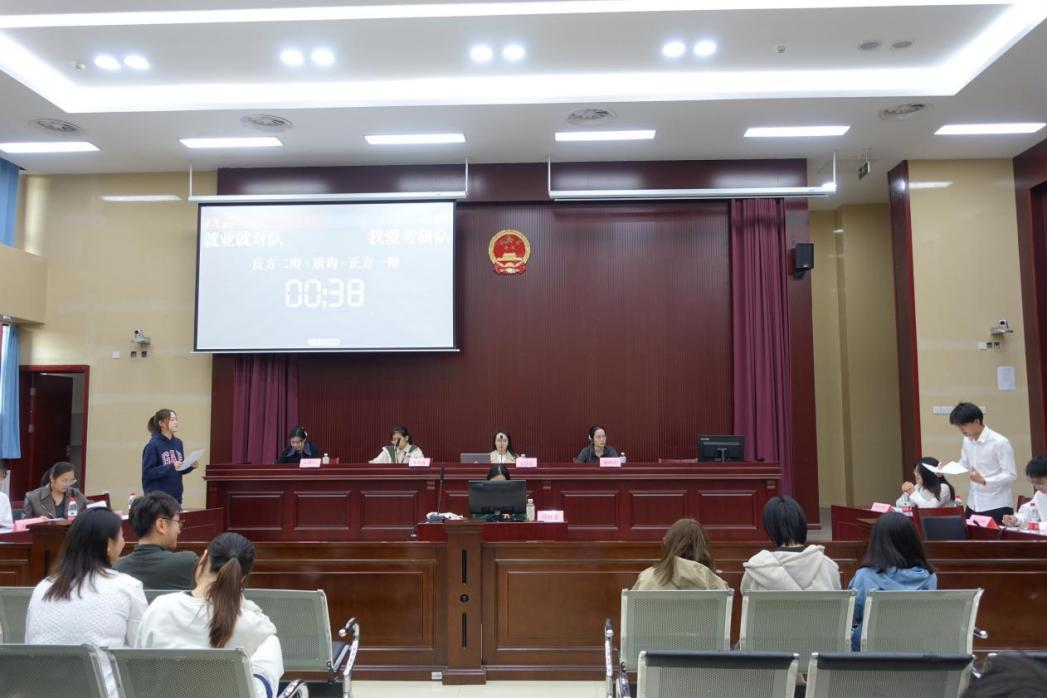 未来该如何选择?是就业还是考研?这是我们每一个本科生必须要面临的一个问题。为了帮助大家更好地了解这两条道路,更加明确自己未来发展的规划,yl23455永利官网就业创业中心联合大学生法律咨询与服务中心于2023年10月28日下午于yl23455永利官网楼模拟法庭进行了“就业“还是”考研“主题辩论赛。