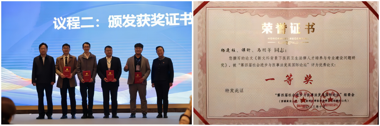 杨逢柱副教授的报告内容引发了大家的共鸣,获得了参会专家学者的广泛认可和一致好评,并在会后深入交流意见。该报告的同题论文在全会141篇论文中脱颖而出,被评为此次国际论坛优秀论文的一等奖,并被收录于“第四届社会进步与医事法发展国际研讨会”论文集,推荐由《医学与法学》或《现代法学》公开发表。