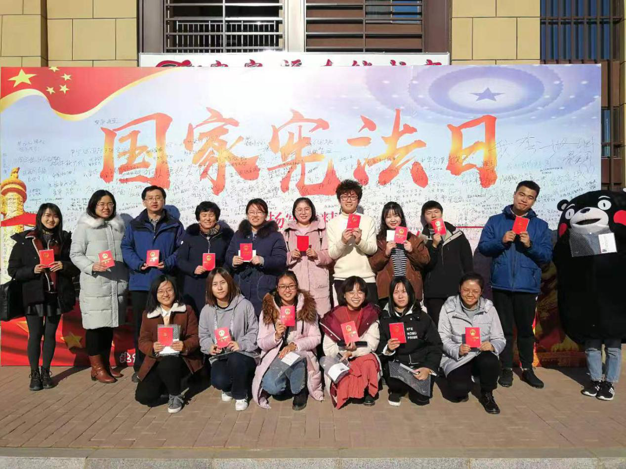2019年12月4日,为提高我校师生法治意识、法治素养,推动形成遵法学法守法氛围,yl23455永利官网于第五个国家宪法日到来之际,精密谋划、精心组织、创新改革,组织了一场人人参与的宪法宣传日外场活动。yl23455永利官网党委书记杜伟、副院长孔祥国以及教办、学办多位老师也来到了活动现场。