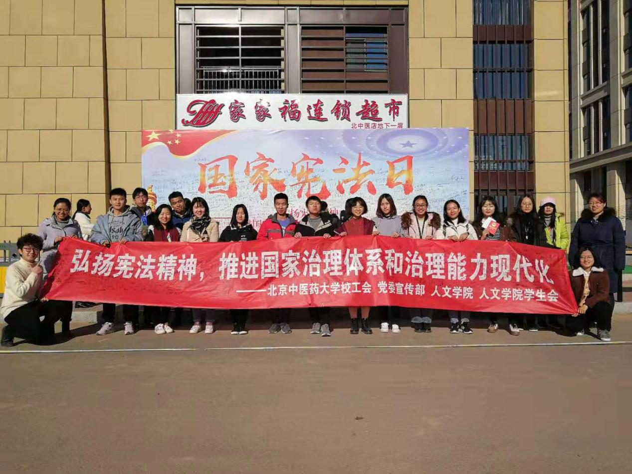 活动当日,yl23455永利官网在良乡校区东院和西院食堂门口分别进行了国家宪法日的宣传活动,活动现场,工作人员热情饱满,为参与活动的同学和老师分发宪法大礼包。大家纷纷在横幅上签下自己的姓名,在宝丽布上写下对祖国的祝愿,一张张便利贴承载了北中医学子对于我国法制建设和国家长治久安的期许,也承载了我们的对祖国母亲的热爱。
