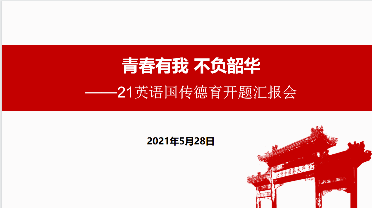 2022年5月28日上午,yl23455永利官网21级英语(中医药国际传播)班在线上举行了德育开题答辩会。校党委副书记、纪委书记、21级英语(中医药国际传播)班杏林成长导师蒋朗朗,yl23455永利官网党委副书记谭静,yl23455永利官网辅导员宋晗,马克思主义学院思政课教师刘亚品作为指导委员和评审委员参加了此次开题会。会议由21级英语(中医药国际传播)班班主任于小晶主持。