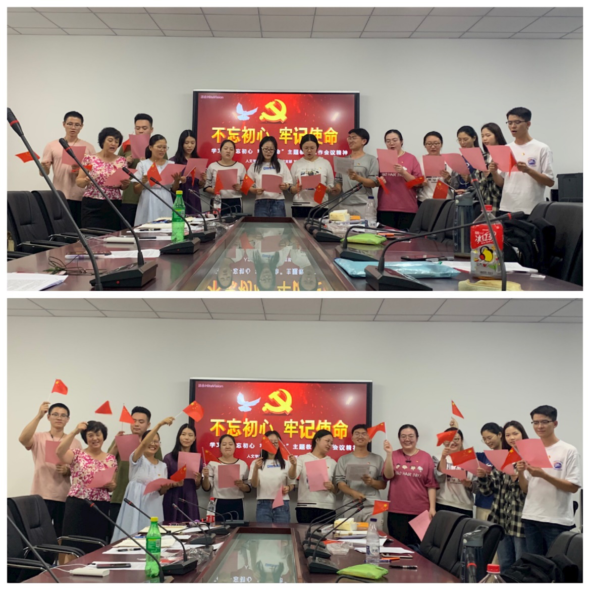 活动开始前,法学专业学生党支部全体党员认真学习了习近平在“不忘初心、牢记使命”主题教育工作会议上的讲话内容,并撰写了学习心得。本次活动分为三个部分,首先从党员同志们分享近期学习生活经历拉开序幕,法学专业学生党支部有9名党员同志面临毕业,多数同学正在紧张备考攻读硕士研究生,杜伟书记和刘玉老师认真听取了大家的分享并给予了指导和鼓励,期待大家取得好成绩。接下来是刘玉老师为学生党员讲授党课,刘玉老师讲述了开展主题教育的重大意义、目标要求、根本任务等,并结合专业学习、支部情况等要求党员同志们全面系统学、深入思考学、联系实际学,同时明确了支部“不忘初心 牢记使命”的学习活动计划,梳理了支部整改发现的问题以及整改的措施、进度等。紧接着杜伟书记做总结发言,肯定了本次活动的积极意义,并分享了自己的心得体会,鼓励大家将“不忘初心、牢记使命”践行到日常的学习工作中,并要求各位党员同志严肃党纪、认真学习,积极服务同学、在同学中起到先锋模范作用。最后正值祖国母亲70周年华诞,杜伟书记和支部全体党员同志手挥五星红旗,集体高声合唱歌曲《我和我的祖国》,共祝伟大的祖国繁荣富强。
