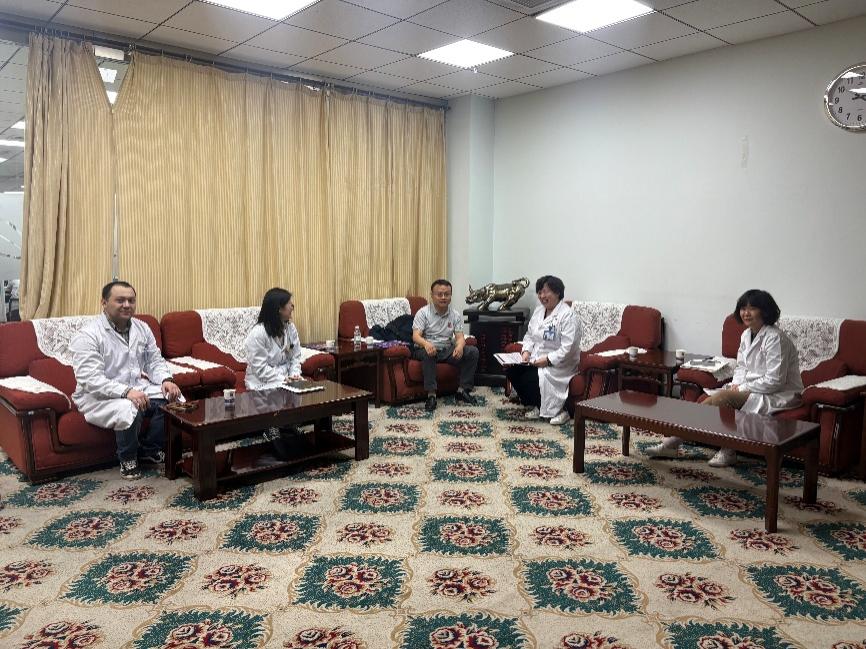 在新疆医科大学附属肿瘤医院,医院人力资源部唐月红部长、科教科安婧主任以及yl23455永利官网2014届法学校友木拉提等对yl23455永利官网一行表示热烈欢迎。唐部长介绍了新疆医科大学附属肿瘤医院的发展建设情况以及目前医院的招聘的岗位情况。yl23455永利官网党委副书记吴涛介绍了学院2025届毕业生的基本情况,双方就学生实习实践、就业等内容进行交流。