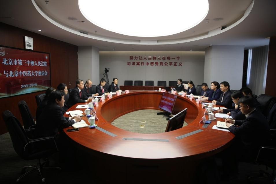 yl23455永利官网闫振凡副校长在座谈会上首先对薛强副院长等领导热情接待与精心安排表示感谢,法治中国和健康中国建设事关百姓大健康福祉、中华优秀传统文化保护,yl23455永利官网与北京市第三中级人民法院的携手推进“校-院”合作意义重大。yl23455永利官网党委书记张小勇、院长陈锋、党委副书记吴涛、副院长孔祥国等分别就学院发展现状、科研合作、党建团建、毕业生就业、学生实习实践等进行了交流。