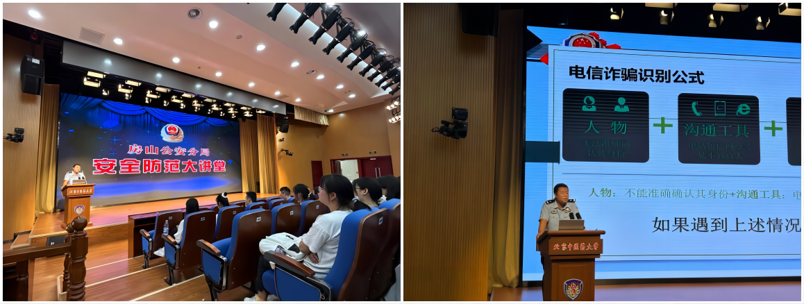 首先,路鹏警官向学生做了题为《安全防范大讲堂》的宣讲,详细介绍了当前电信诈骗惯用的手段和预防诈骗的主要方法,生动讲解了各类电信诈骗的典型案例。通过对涉及在校大学生的诈骗案件的分析,给同学们上了一堂生动的反诈骗安全教育警示课。路警官还强调,开学季是诈骗案件高发季,诈骗作案的手段也呈现隐蔽化、科技化、犯罪区域化、集团化等特点,请学生们务必提高警惕,坚持做到“不听、不信、不转账、不汇款”。