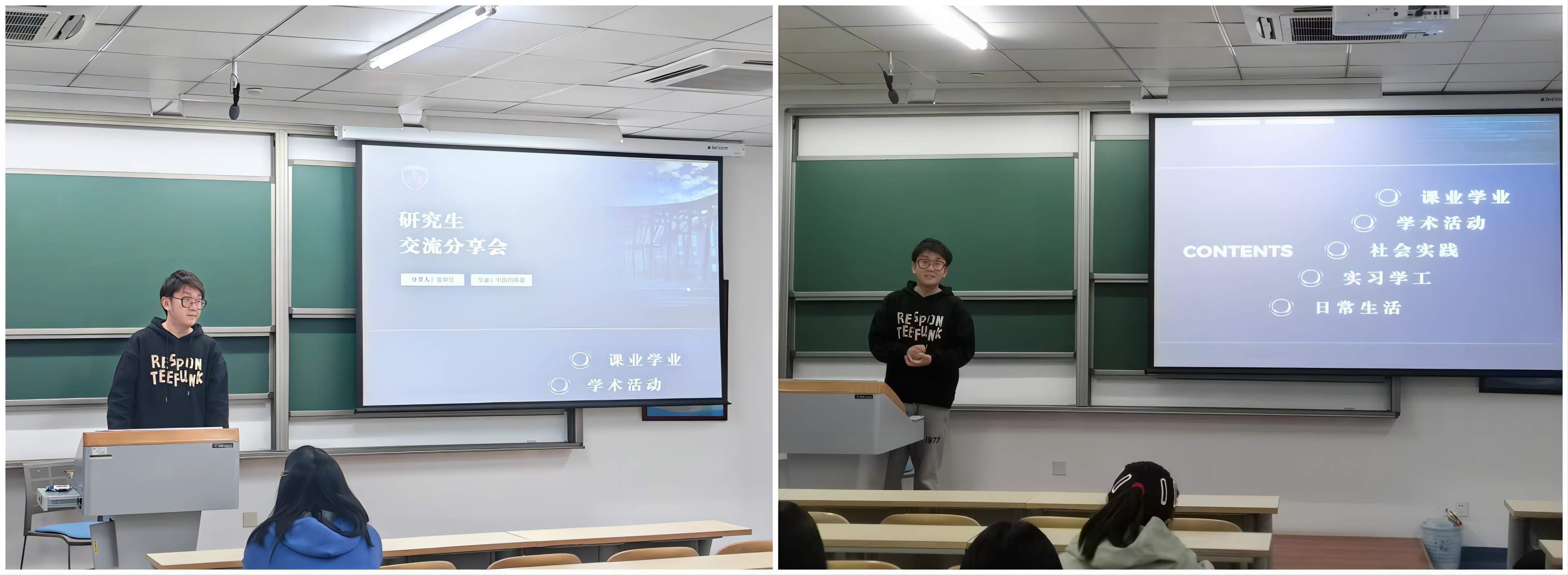 在课业学业方面,姜卓呈同学提醒同学们要重视小论文的发表,所有活动要以达到毕业条件为前提。在学术活动方面的内容,他分享了自己在发表论文、参加学术会议和申请项目课题等方面的经验和建议:要坚持不懈地专注于选定的研究方向;要了解目标期刊录用的论文方向;多在学术会议上宣读论文等。在学生工作方面,他表示因人而异,同学们要根据自身情况,选择自己擅长并感兴趣的学生工作。在社会实践方面,他建议同学们积极申报,提升自己的综合素质。在实习经历方面,他强调研究生尤其是学硕的同学首先要征得老师同意,然后积极向学院老师寻求帮助,充分利用学校和学院所能提供的资源。在日常生活方面,他表示研究生生活充满了挑战与压力,但适度放松同样重要。在紧张的学习和研究之余,找到适合自己的放松方式,缓解压力,保持身心健康,更好地投入学习和研究,享受并珍惜研究生生活中的点滴美好。