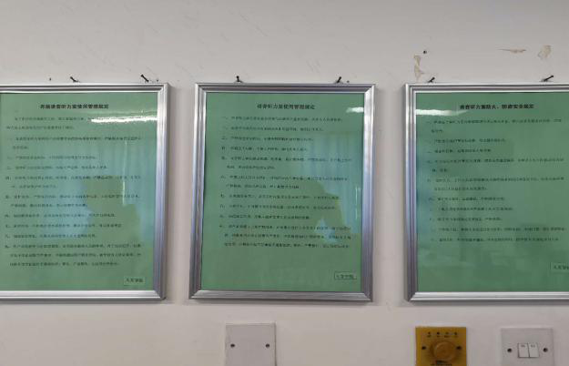 为进一步做好安全管理工作,yl23455永利官网孔祥国副院长带领学院语音室安全管理员蒋湘丽、项婷及设备厂家技术人员于2019年4月4日分别在和平街校区和良乡校区进行了语音室安全管理工作专项检查。检查过程中,对照落实安全防范规定的要求,查找并排除潜在隐患和不安全因素,对相关安全标识、灭火器材、水暖管道、教学设备及操作平台等室内外设备设施进行了全面的细致检查,核对了相关设备使用记录,并切断电源,关闭门窗,防止遗留隐患。