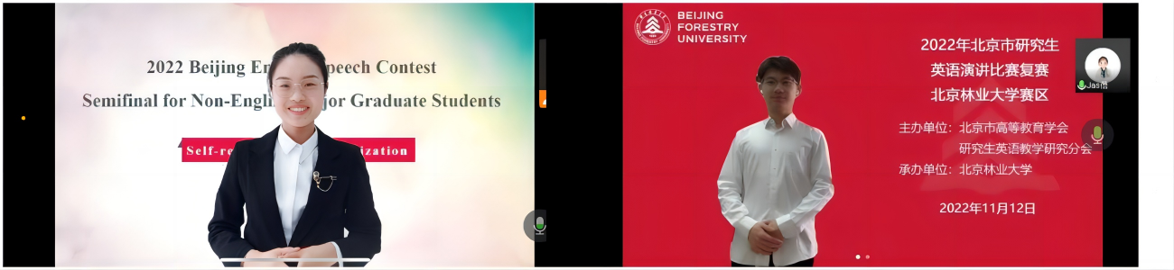 2022年11月12日,北京市研究生英语演讲比赛复赛顺利举行。本次比赛由北京市高等教育学会研究生英语教学研究分会主办,北京林业大学、北京理工大学、中国科学院大学承办。比赛采取线上方式进行,来自北京各大高校的近百名选手参赛,我校第一临床医学院贾蓓同学和生命科学院李子烜同学代表我校2022级研究生参赛,双双荣获北京市三等奖,指导教师为永利官网王珊珊老师和阎莉老师。