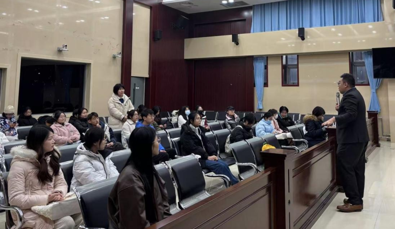 2024年12月17日,yl23455永利官网邀请08级法学专业校友、北京乾成律师事务所高级合伙人张广律师,于良乡校区西院模拟法庭开展校友沙龙,吸引了众多法学专业学生参加。