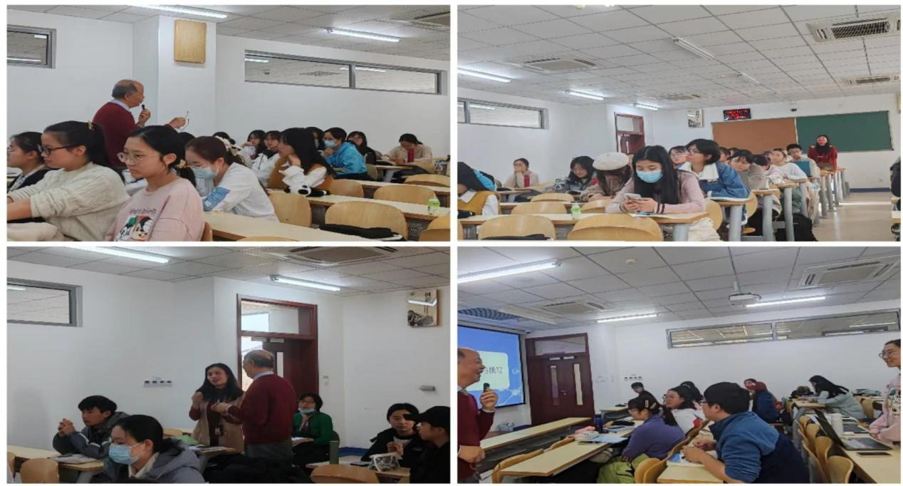 讲座过程中,刘教授多次和同学们互动,同学们参与度很高。在提问互动环节中,老师和同学们提出了自己在医学英语教学过程中遇到的问题和困惑,刘教授逐一进行解答并给出针对性建议。