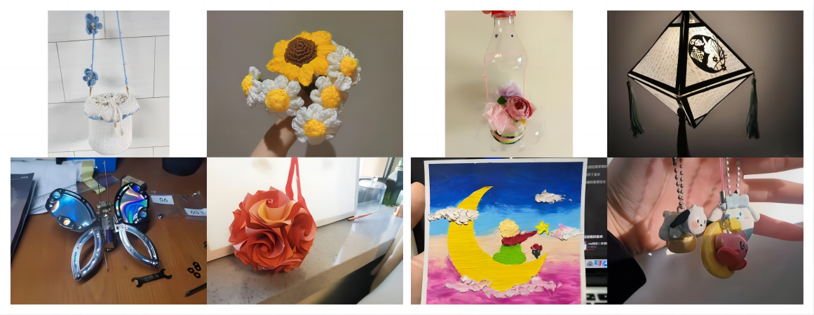 活动中,同学们发挥同学们充分发挥自身天马行空的想象力,以奇思妙想为蓝图范本,亲手制作了属于自己的一件手工作品。每位同学的作品都各具特色:有变废为宝、废物利用的手工制品;也有以树叶、毛线等常见的素材所制成的拼贴画;也有年味十足、红红火火的灯笼及窗花剪纸作品;更有许多设计巧妙、精心制作的DIY成果。