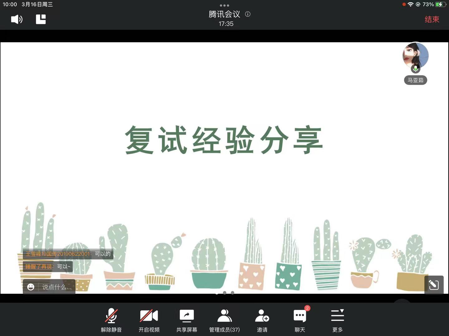 为帮助2022届毕业生做好复试准备、2023届毕业生做好考研规划等,yl23455永利官网于2022年3月16日上午在腾讯会议召开“2022英语专业考研经验分享会”,会议邀请到21级硕士班的马亚茹学姐和姜卓呈学长为同学们做分享,yl23455永利官网就业专员刘玉老师及2018级、2019级英语专业学生参加会议,会议由就业联络员李佳琪主持。