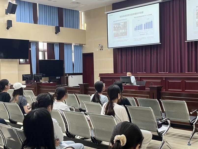宣讲会伊始,主讲人为在场学生介绍了科大讯飞集团的企业概况与运营理念、以及科大讯飞在语音识别、语音合成、机器翻译、图文识别、智医助理、教育技术以及认知大模型等方面取得的显著成果。