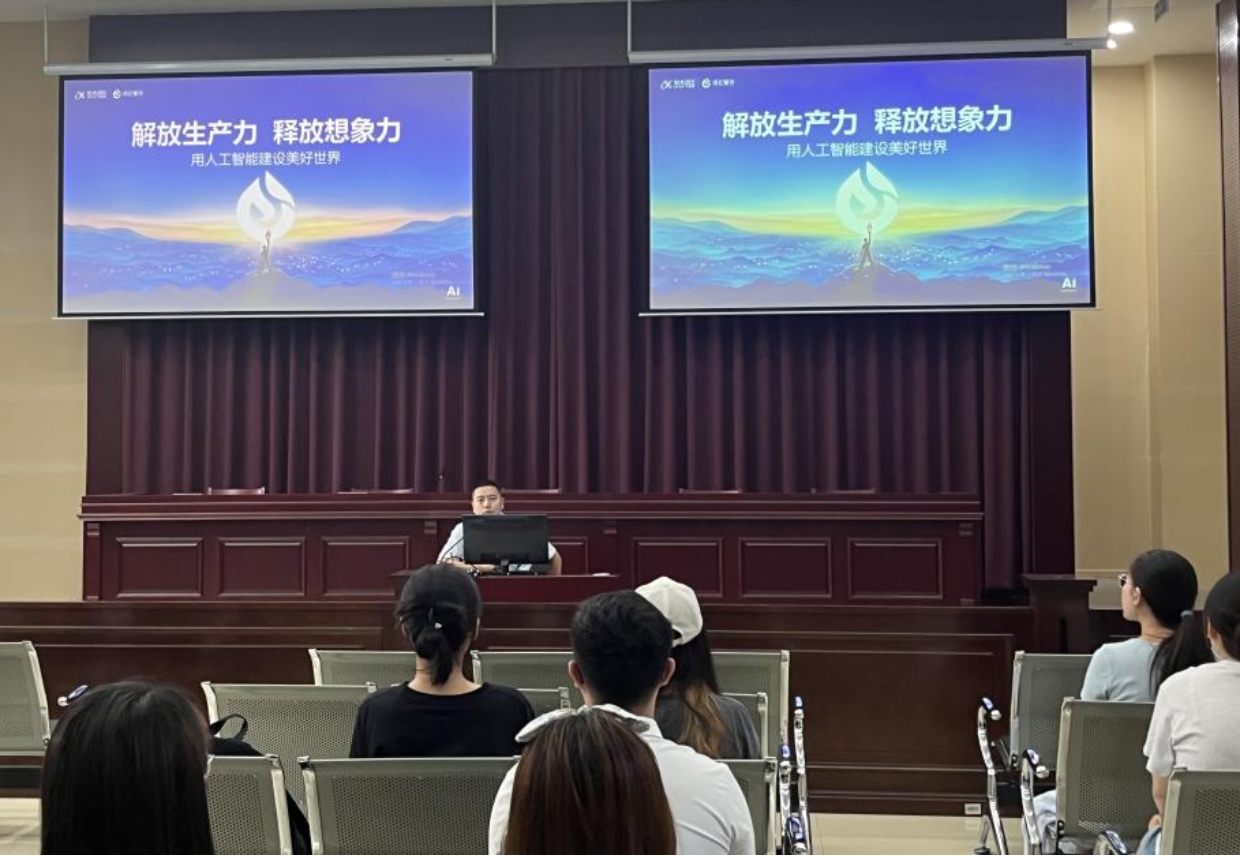 2024年6月20日下午两点,yl23455永利官网在模拟法庭成功举办了科大讯飞集团专场宣讲会。此次宣讲会由谭静副书记主持,科大讯飞的技术人员主讲,主题为“解放生产力,释放想象力,用人工智能建设美好世界”。